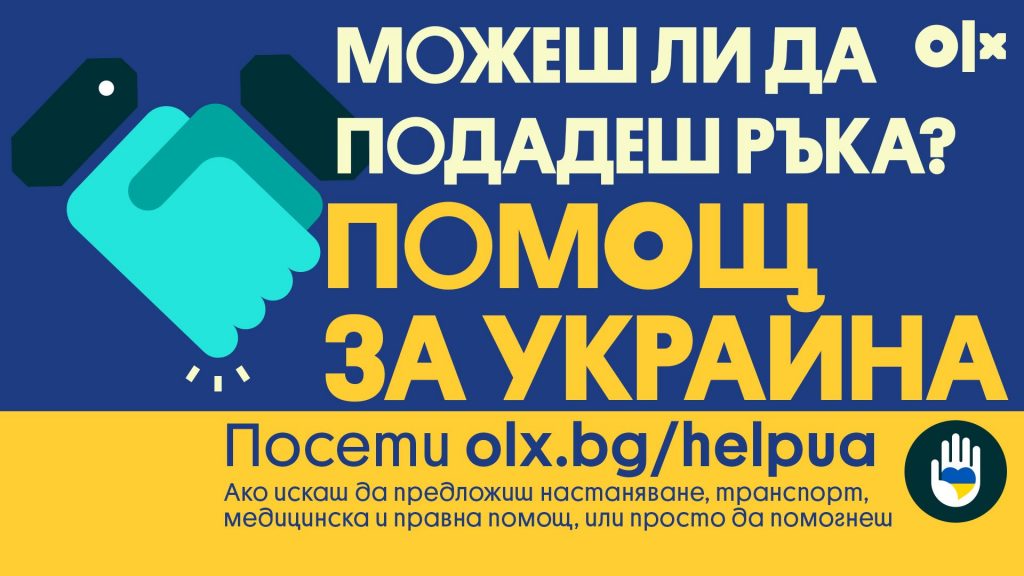 OLX стартира акция в подкрепа на хората, засегнати от войната в Украйна. Компанията спешно реагира на международната криза и по този начин се присъединява към впечатляващите усилия от страна на България за подпомагане на украинските граждани.
