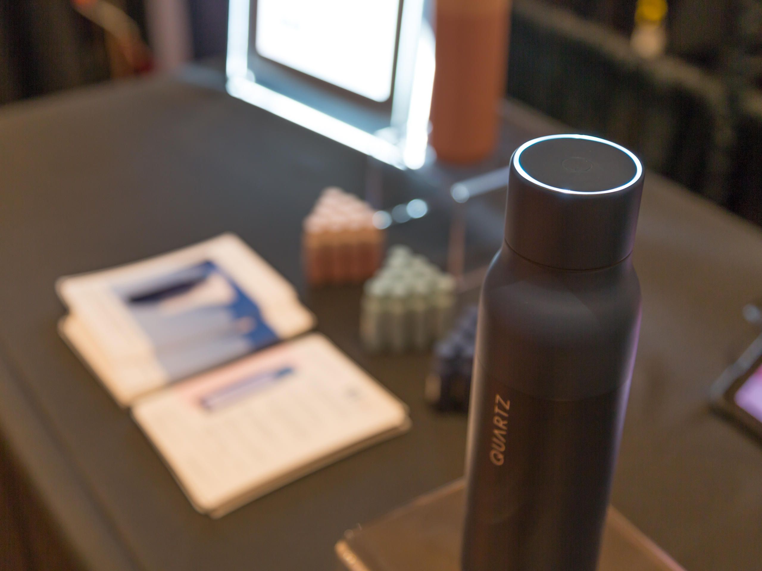 Бутилката Quartz, която беше показана на технологичното изложение CES 2018 в Лас Вегас обаче, използва ултравиолетова светлина, за да се поддържа чиста и да пречиства водата в себе си. Тя е с обем около половин литър, а в капачката й е вградена UV лампа, която се активира на всеки четири часа, за да пречисти водата и самото шише, което е двойно изолирано, за да поддържа течностите в себе си студени за 24 часа или горещи, съответно за 12 часа. Зареждането става с USB кабел и с него бутилката издържа два до три месеца.