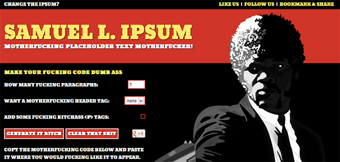 Запознайте се с генератора на Samuel Ipsum – текстът, който ще направи работния процес на уеб дизайнерите много, ама много по-забавен. Край на този shit, скъпи мои дизайн гуру motherfuckers. Ето как трябва да изглежда изкуственият текст: