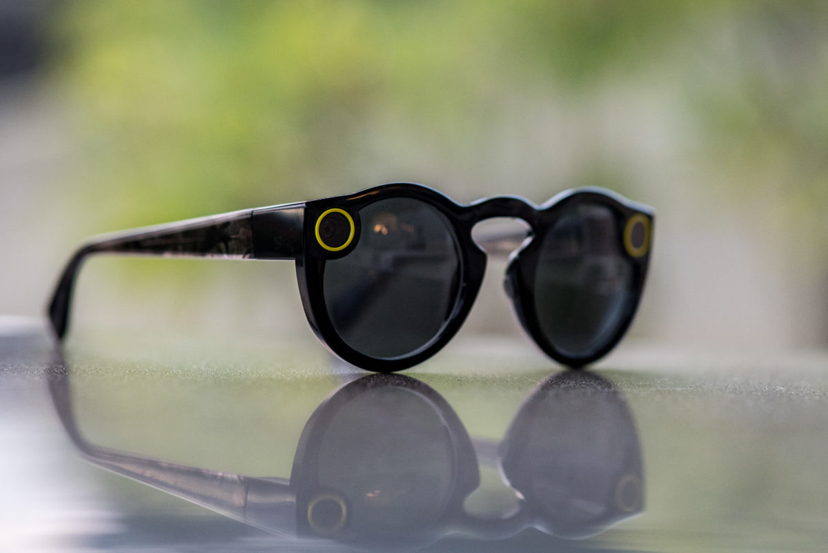 Оригиналният модел представлява слънчеви очила с вградени камери, които позволяват на потребителите да заснемат 10 секундни клипчета и да ги качват в Snapchat. Качеството им обаче не е сред най-високите, въпреки прекрасната идея за споделяне на уникалната гледна точка във всеки удобен момент. Очилата се продават чрез автоматите за продажба на дребно Snapbot, но компанията е реализирала едва 150 000 чифта до сега.