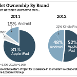 Но дори преди тези устройства, навлизането на таблети с Android промени таблетния пазар, точно както се случи със смартфоните през последните години. От 44-те процента потребители на смартфони, 46 процента използват Android на Google – а 38% притежават iPhone. BlackBerry все още заема стабилен 10 процента пазарен дял сред американците.