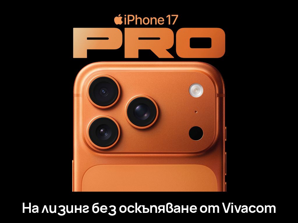 Vivacom стартира нова кампания с атрактивни условия за почитателите на Apple. От 24 октомври моделите iPhone 17 Pro, iPhone 17 Pro Max и iPhone Air се предлагат с 24 и 36-месечен лизинг без оскъпяване в комбинация с план Unlimited 200 и Unlimited MAX. Офертата е валидна до 9 ноември 2025 г. и е достъпна както във физическите магазини, така и онлайн на сайта на телекома vivacom.bg.