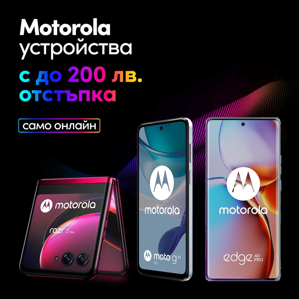 До края на месец юни Vivacom предлага специални отстъпки с до 200 лв. от цената на избрани устройства MOTOROLA в онлайн магазина си. В атрактивната промоция са включени множество модели смартфони от серията EDGE, MOTO E и MOTO G, като някои от тях в комплект със стъклен протектор, кафе машина LAVAZZA AMODO MIO или часовник.