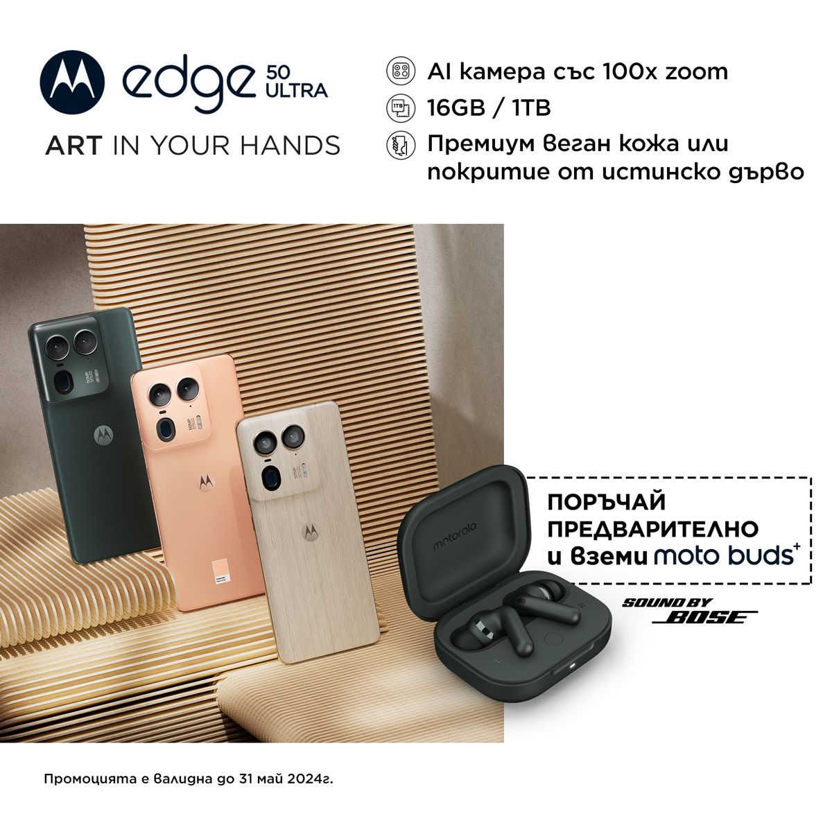 Vivacom започва да приема предварителни поръчки за новата Motorola Edge 50 Ultra – най-усъвършенстваният модел на марката. Кампанията за предварителните поръчки ще продължи до 31 май. Потребителите, заявили своя смартфон в рамките на този период, ще получат модела в комплект с безжични слушалки Moto Buds+. Motorola Edge 50 Ultra може да бъде заявен с предварителна поръчка за 47,98 лева на месец на лизинг за 36 месеца при сключване на 24-месечен договор за план Unlimited MAX.
