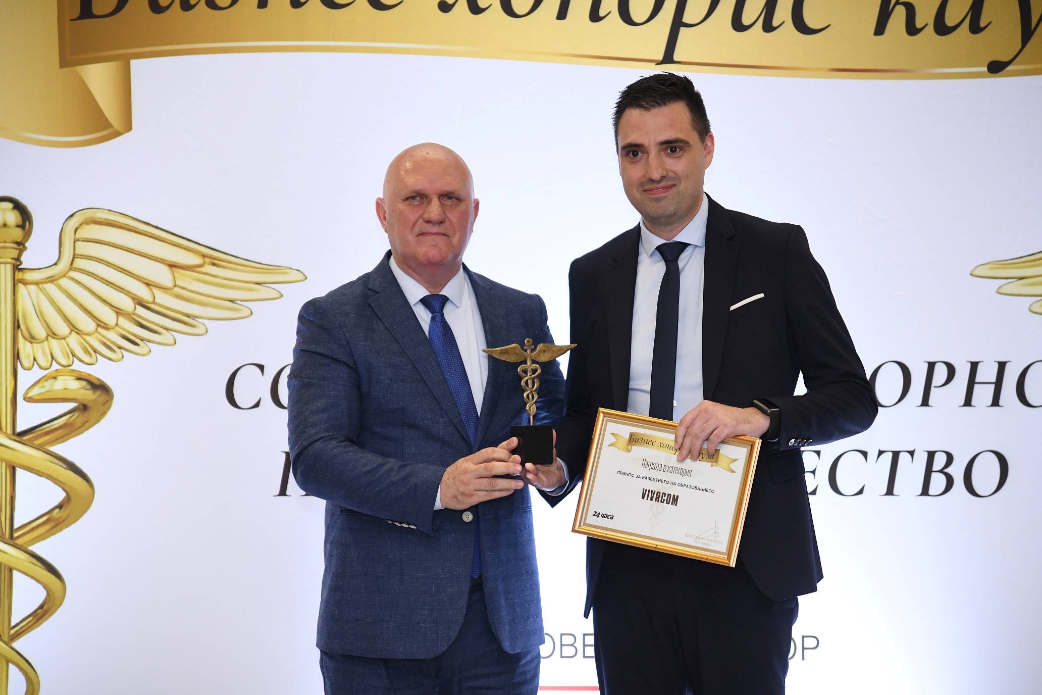 Vivacom беше отличен в категория „Принос за развитие на образованието“ на наградите за социално отговорно предприемачество „Бизнес хонорис кауза“ в националната кампания на „24 часа“. Призът е за подкрепата на Олимпийските отбори по природни науки, която телекомът осигурява през последните две години чрез инициативата Операция „Жълти стотинки“.