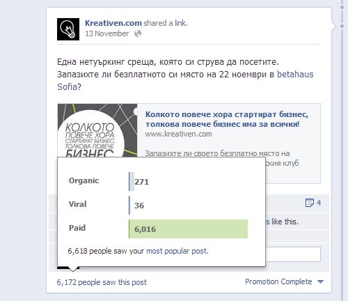 Някои потребители на социалната мрежа виждат линк с броя души, видяли споделените от тях постове – както и колко от тях са го видяли от естествено и от вирусно разпространение.