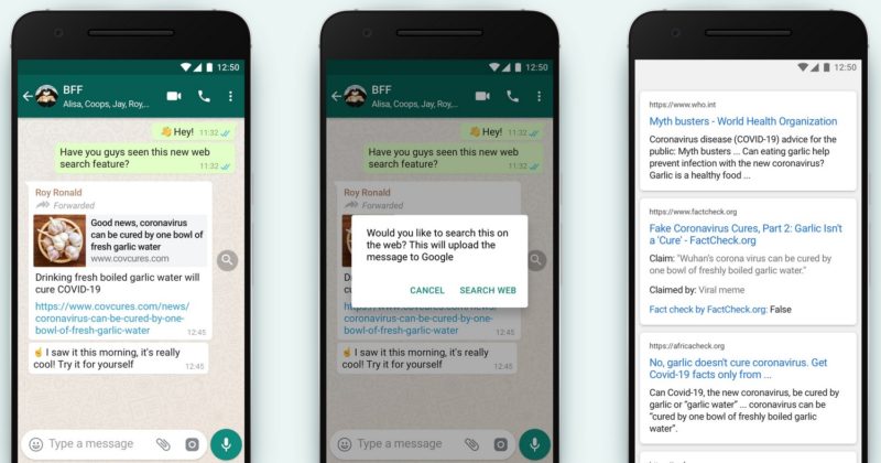 В опит да се бори с разпространението на подвеждаща информация и да позволи на потребителите да проверяват истинността на препращаните съобщения, WhatsApp въведе инструмент за търсене в мрежата.
