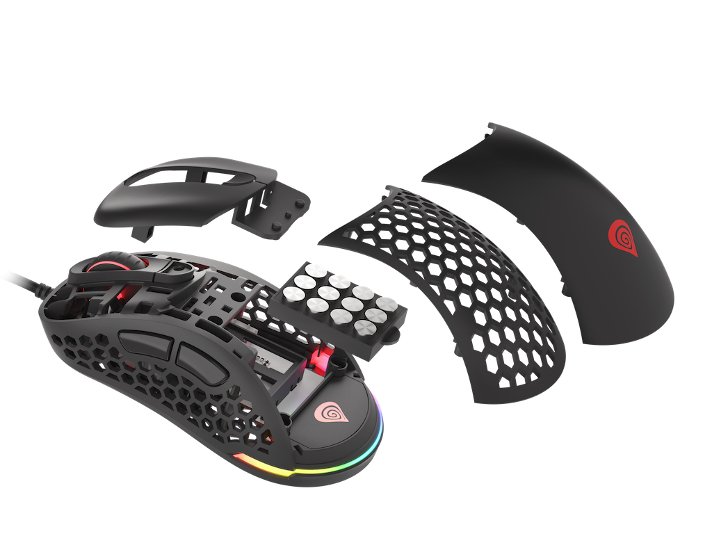 Xenon 800 е една от най-леките мишки, предлагани на пазара, осигуряваща максимален контрол и светкавична реакция на движение. Матовият корпус на устройството тежи само 58 г, но комплектът включва допълнителна система от 12 тежести, които позволяват на потребителите да добавят около 20 грама към теглото. На разположение е избор между два сменяеми панела – класически и перфориран, като перфорациите не само намаляват теглото, но и придават отличителен и впечатляващ външен вид.