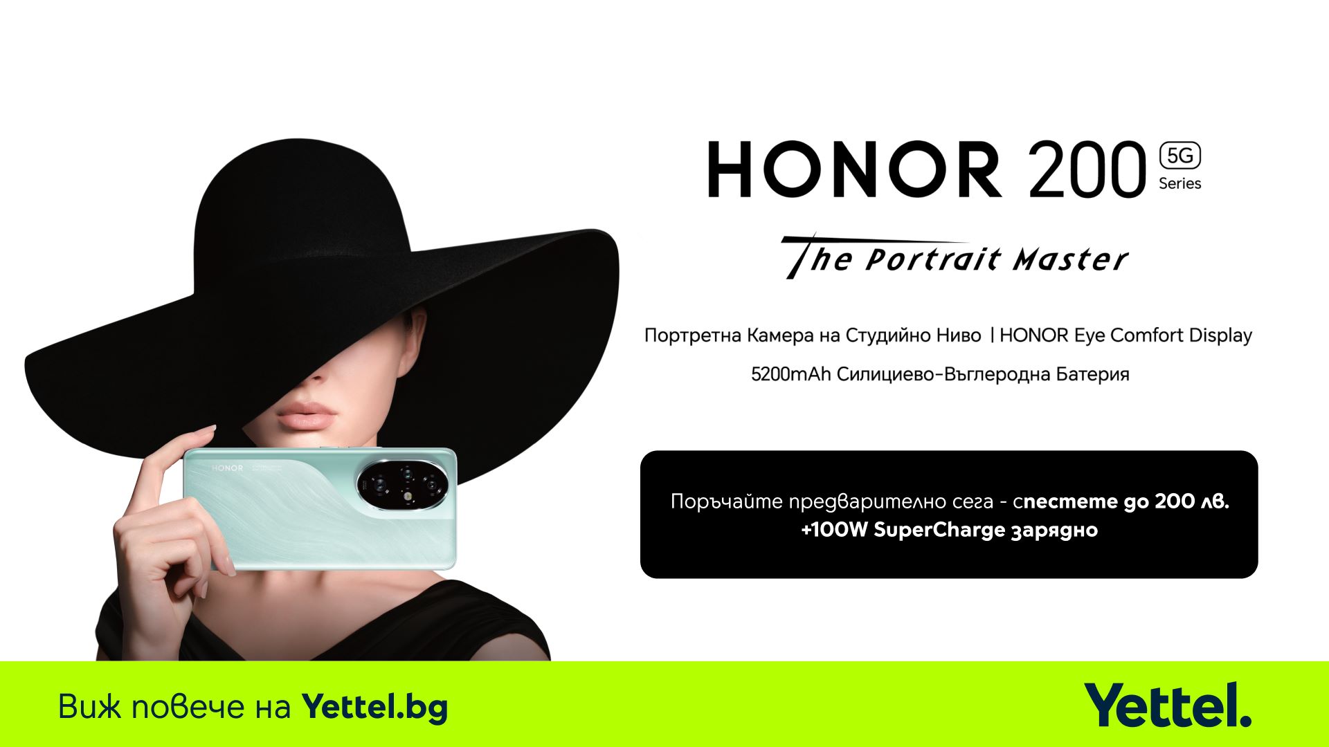 Yettel приема предварителни поръчки в своите магазини и уебсайт за новите смартфони от среден клас HONOR 200 и HONOR 200 Pro. Клиентите, които поръчат някой от двата модела до 30 юни в комбинация с двугодишен мобилен план от оператора, ще спестят до 200 лева и ще вземат бързо зарядно HONOR SuperCharge 100W.