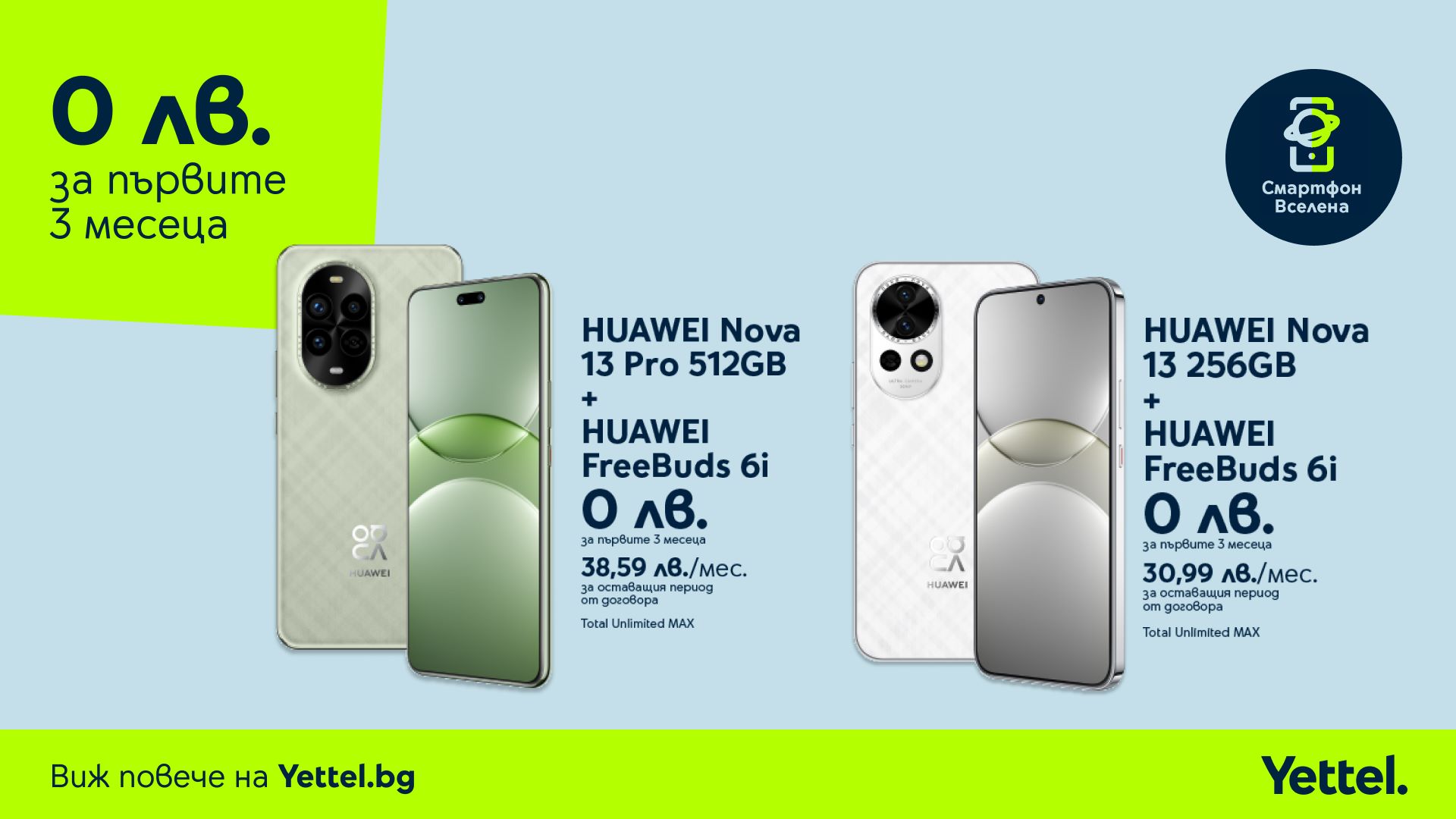 Февруари стартира с атрактивна оферта от Yettel. До 4 март всички, които искат да се сдобият с нов смартфон или смарт часовник, могат да го получат сега, но да започнат да го изплащат чак през май. До края на промоционалния период клиентите могат да вземат избрани смарт устройства с двугодишен лизинг и да заплащат 0 лв. месечна вноска през първите 3 месеца, при комбиниране с планове Total Unlimited.