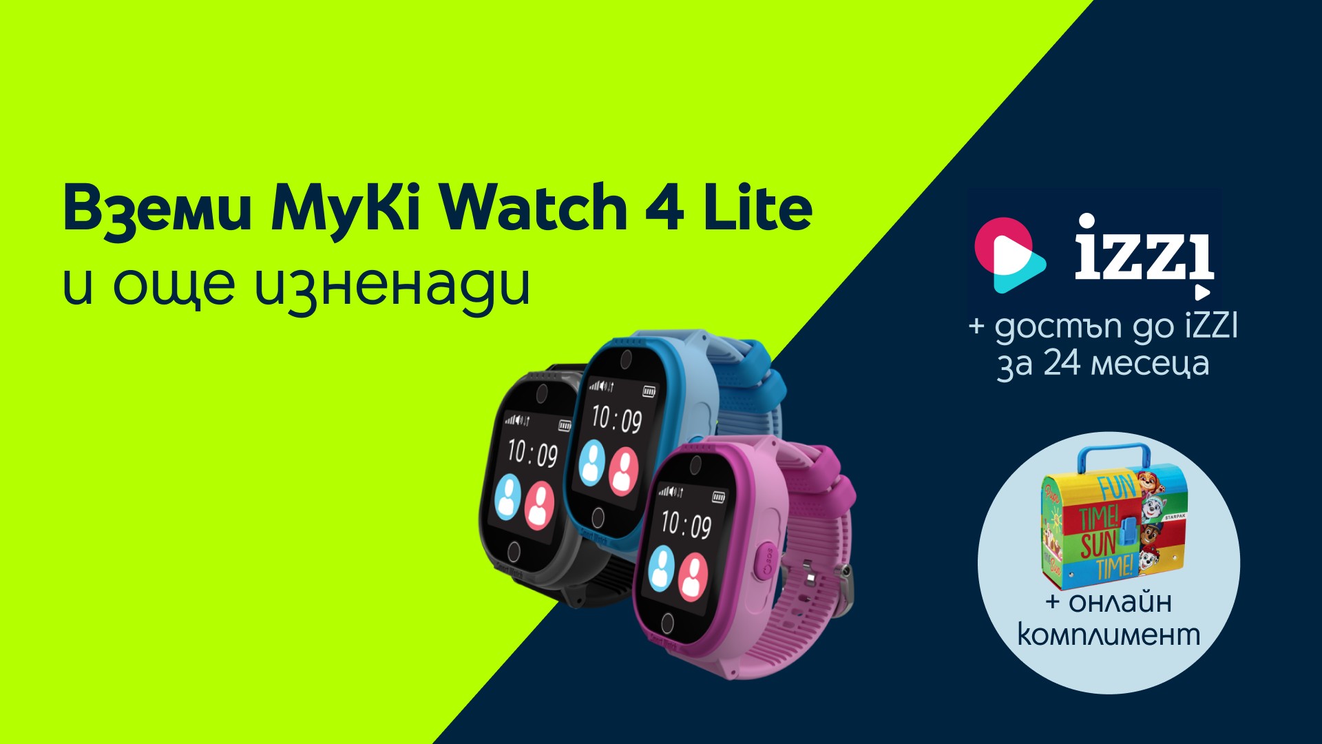 MyKi Watch 4 LITE има функция за чат с родителите и изпращане на снимки от вградената камера. Часовникът идва с разнообразни приложения като крачкомер, математическа игра и възможност за създаване на аларми, които да напомнят за важните задачи за деня. Цената на модела е 69,99 лв. с Джуниър 13,99 с договор за 2 години и до края на септември устройството се продава онлайн в комплект с Paw Patrol чанта с пособия за рисуване.