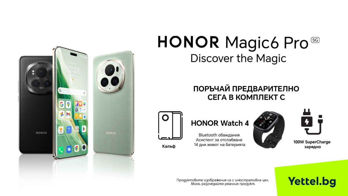 Непосредствено след премиерата му в Европа u за началото на Световния мобилен конгрес в Барселона, Yettel започва да приема предварителни поръчки за един от най-очакваните флагмани за 2024 година – HONOR Magic6 Prо. Моделът се отличава с изключителната си мощ, невероятна система от камери, здрав и ярък екран, както и с подобрената си енергийна ефективност и бързо зареждане.