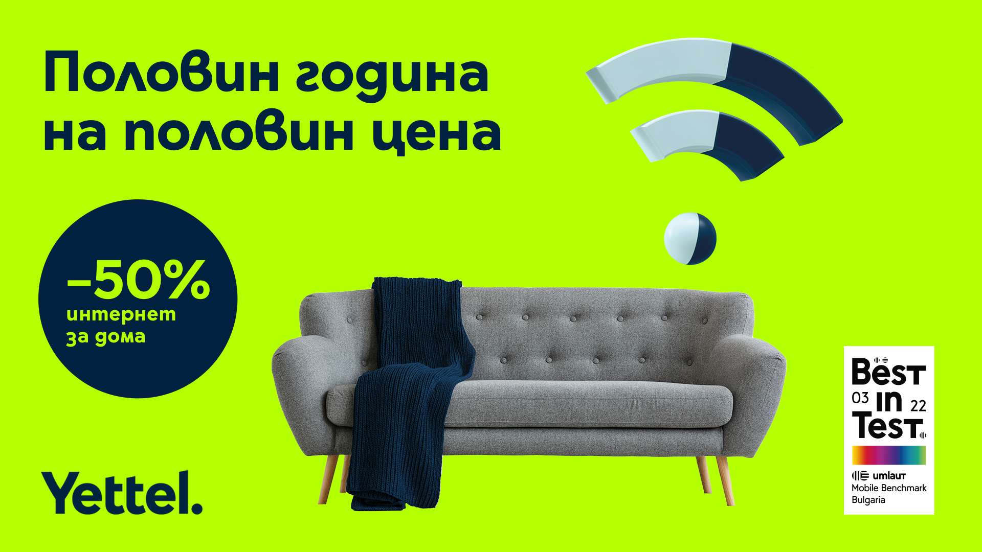 До края на октомври Yettel предлага промоционални условия за домашен интернет с 50% отстъпка от цената на месечната такса за първите 6 месеца при сключване на двугодишен договор. Офертата за половин година на половин цена включва всички 4G и 5G тарифни планове „Интернет за дома“ и от нея могат да се възползват и настоящите, и новите частни и бизнес клиенти на оператора. Услугата свързва дома с бърз и безкабелен интернет през мобилната мрежа на Yettel, отличена с пет поредни Best in Test сертификата за най-добра мрежа. Свързаността идва и с услугата „Онлайн защита“ за целия период на договора за 5G тарифите „Интернет за дома“ и с 2 месеца тестови период за 4G плановете. За шестте месеца промо период отпада и таксата от 1,99 лв. на месец за устройство при 5G плановете.